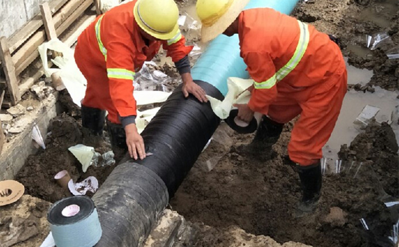 3、底漆涂刷5-10分鐘表干后即可纏帶。施工過(guò)程中要增大聚丙烯防腐膠帶的平衡漲力,達到緊貼于作業(yè)面,實(shí)現包平無(wú)空隙、無(wú)皺折效果。