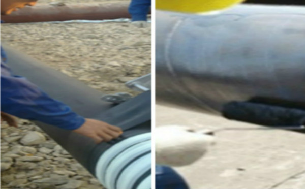 4.待底漆表干后(在常溫及空氣自然流動(dòng)狀況下,一般需要3~5分鐘,即可纏帶。應特別注意溫度低時(shí)或在溝槽施工時(shí)的表干時(shí)間,確保鋼管下半部分表干。