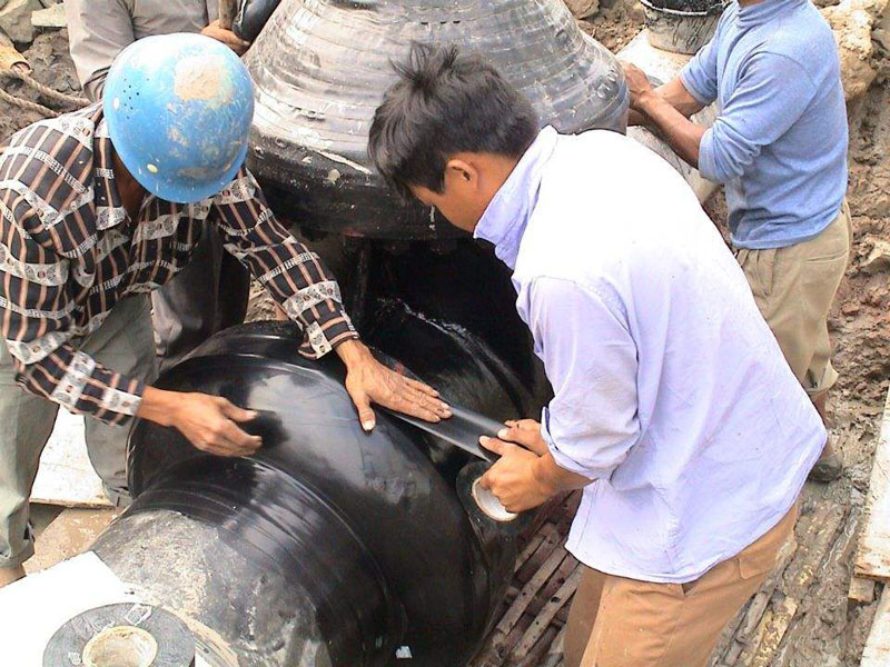 (1)聚乙烯防腐膠帶防腐層表面應平整、搭接均勻、無(wú)永久性氣泡、皺褶和破損;